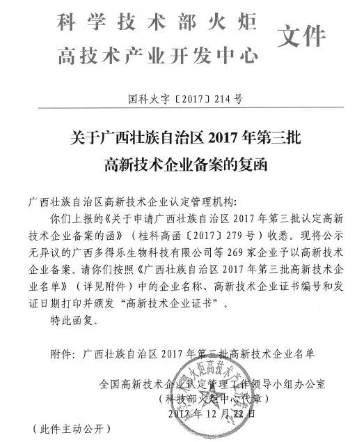 喜報!廣西2017年第三批高新技術企業名單公布,家之寶榜上有名!