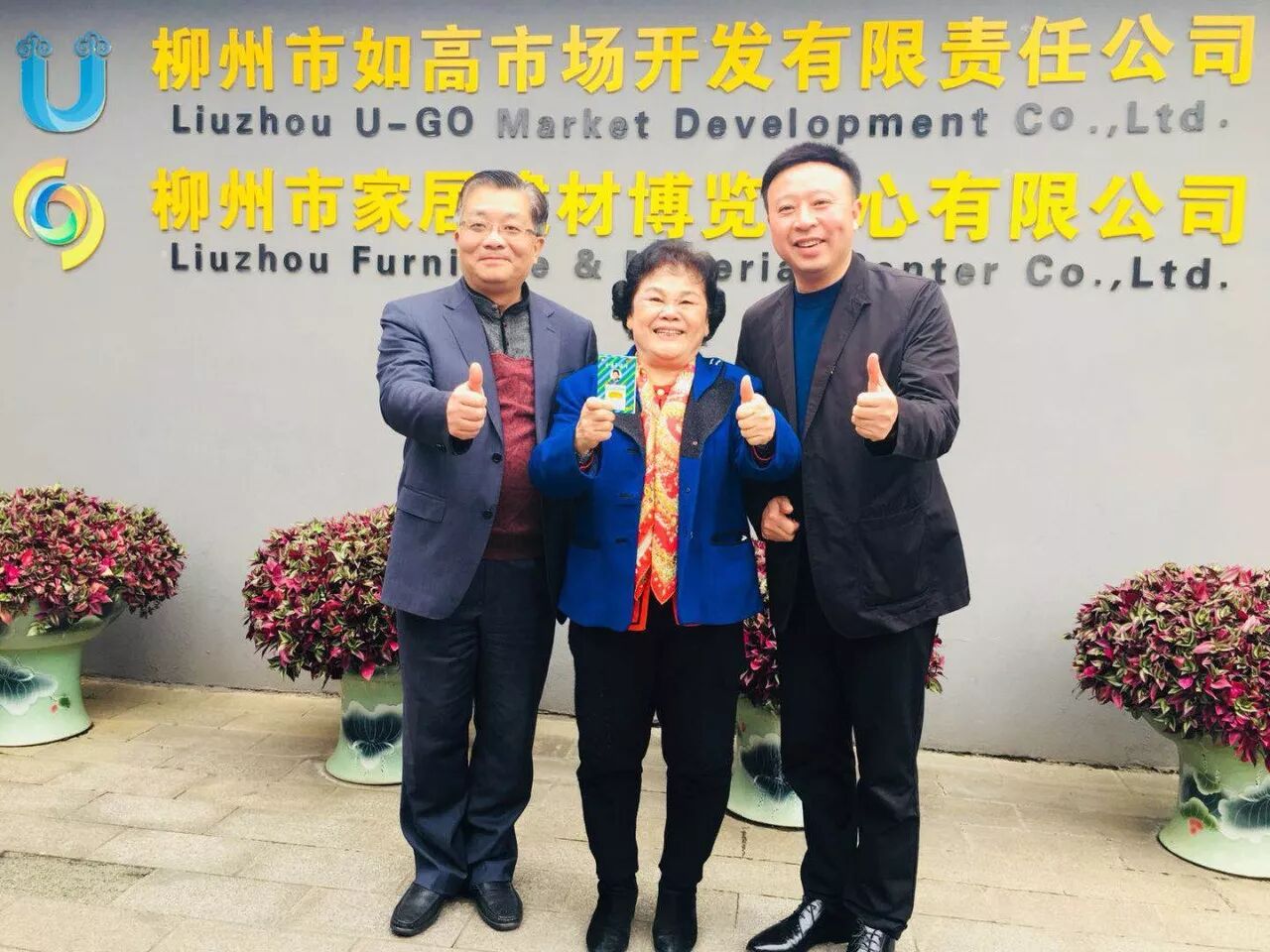 1月23日上午,江湖人稱“江老娘”的廣西金嗓子集團董事長兼總經理江佩珍女士,率隊蒞臨柳州家居·家之寶參觀交流,與柳州家居·家之寶董事長李明亮、總裁譚丹交流企業經營之道。