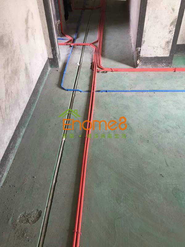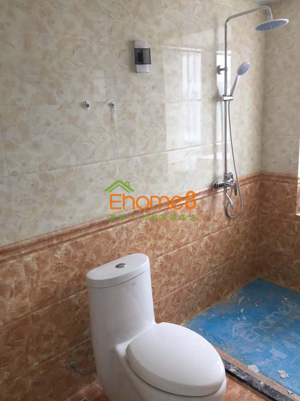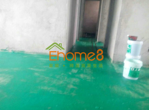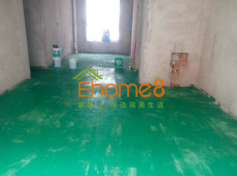 衛生間門安裝及衛生間有色防水的涂刷及閉水試驗、鋪磚等