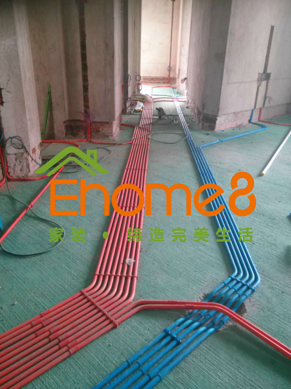 地面綠環地固的涂刷及水電材料的配送